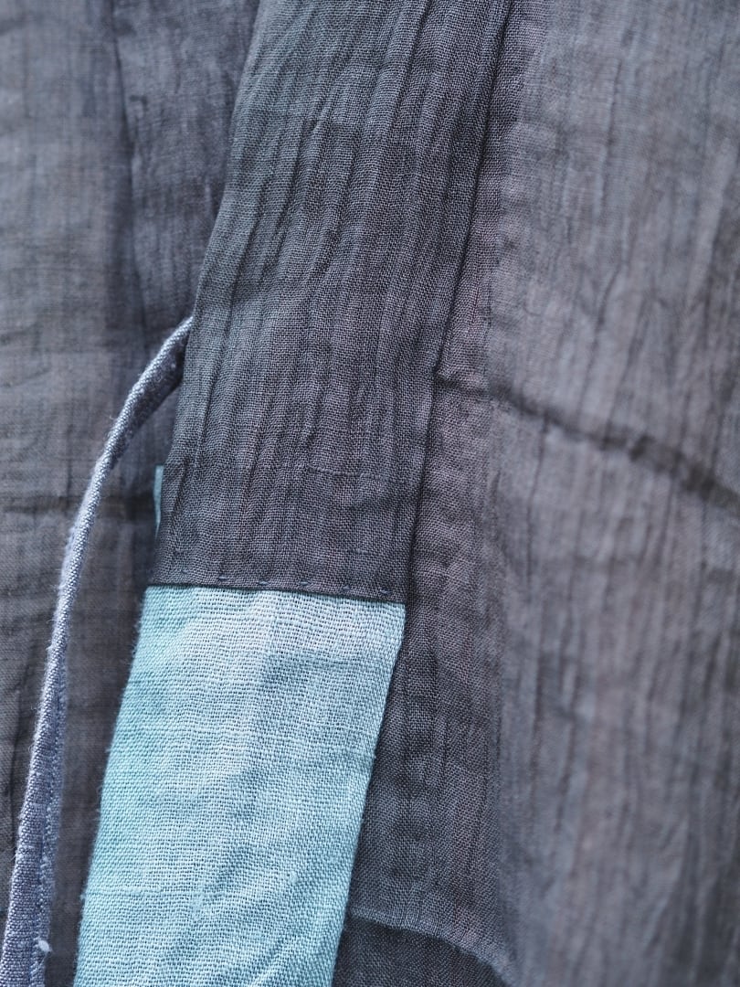 袖(緑色)はだいぶ使い込まれており、シャリ感を超えてふんわりしはじめています。