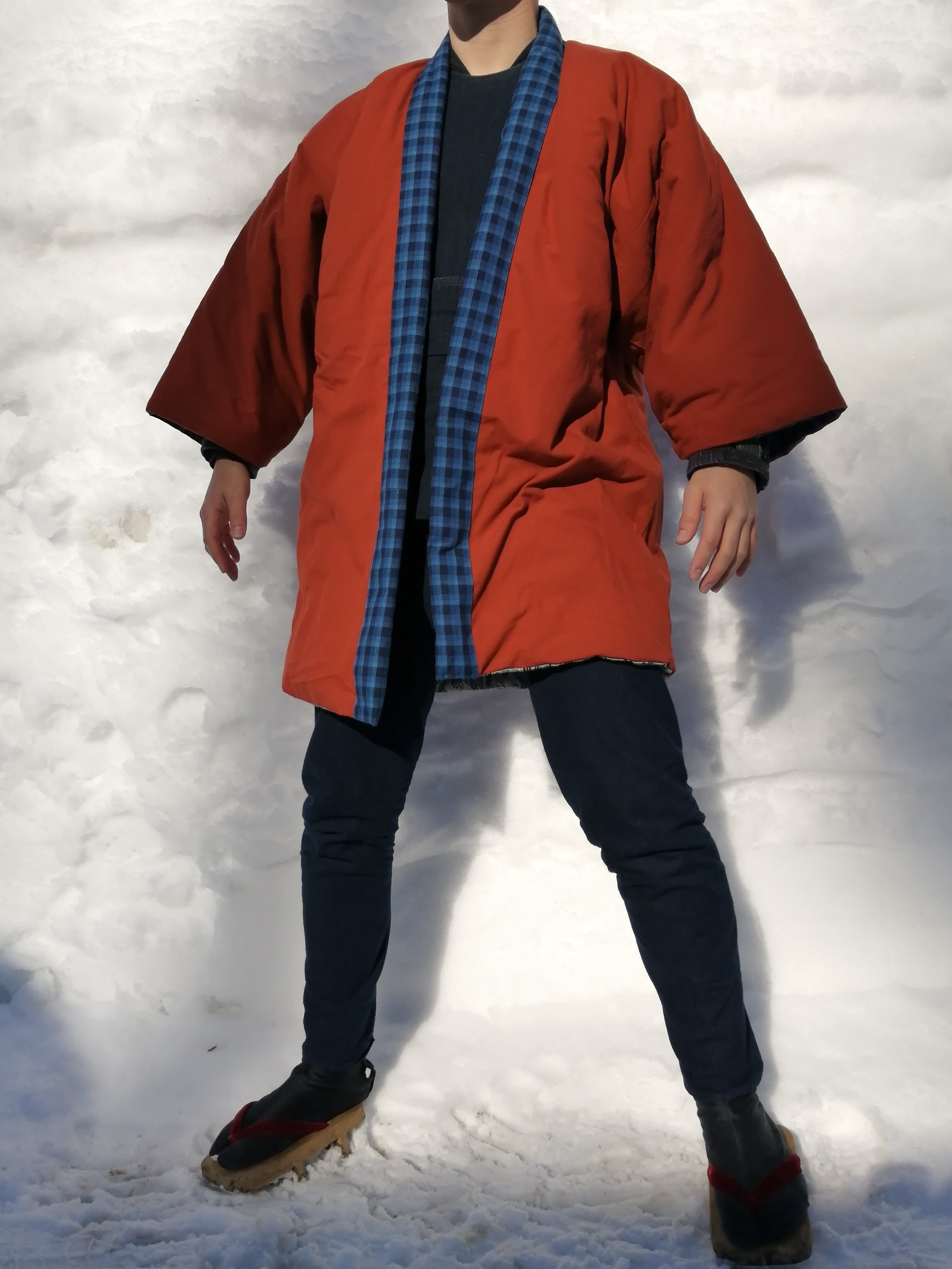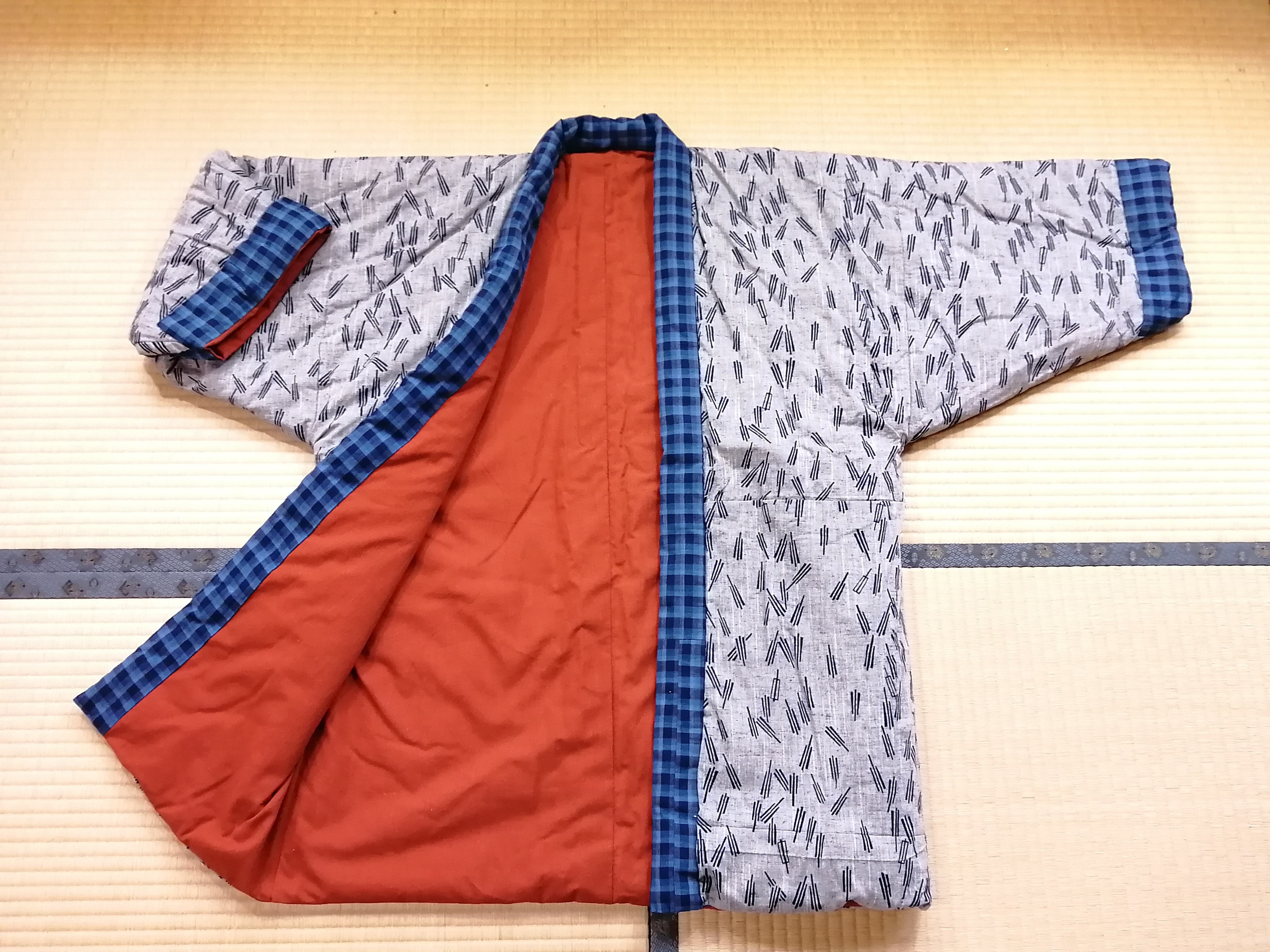 ポリわたではなく木綿わたを入れました。暖かく、より昔に近づく。