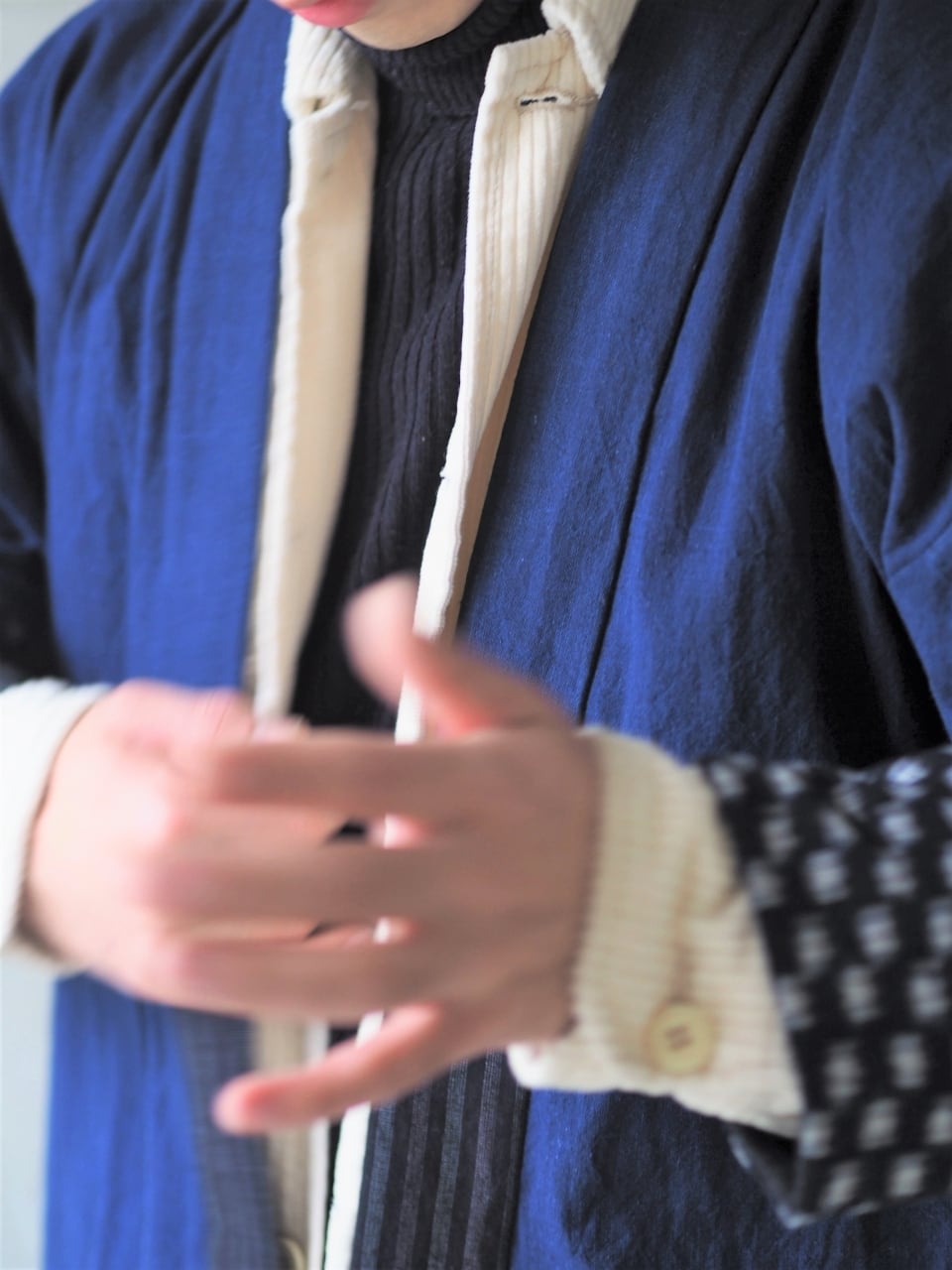 各裾を二重仕立てにしました。そのぶん厚くなり、重みや形のハリができました。沢山着るとより風格増します。